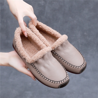 Winter warm cowhide comfortable soft bottom mom shoes fleece-lined women's shoes plus size wide running women's shoes 8128