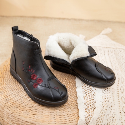 Hot-Selling Old Beijing Style Mother's Cotton Shoes, Genuine Leather Soft Sole, Winter Fleece-Lined Short Boots for the Elderly, Warm Leather Shoes for Middle-Aged and Elderly Women