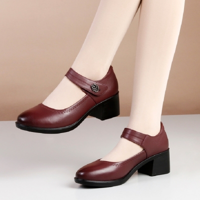Foreign Trade Genuine Soft Leather Soft Sole Flats for Women 2025 New Medium Heel Mom Shoes Thick Heel Flats Bottom Round Toe Korean Style Small Leather Shoes