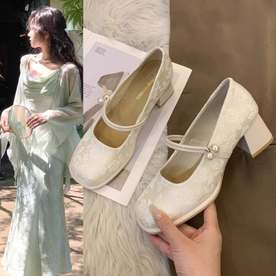 New Chinese Shoes Women's Thick-heeled Shoes Spring Cheongsam Shoes 2025 New Arrival with Horse-faced Skirt All-match High-heeled Shoes