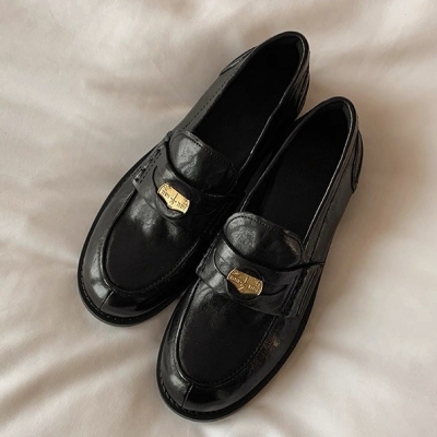 [Sujia] Cowhide Version ~ Flats Loafers ~ Horsehide Retro Color Rub Small Gold Coin Loafers Women's Small Leather Shoes