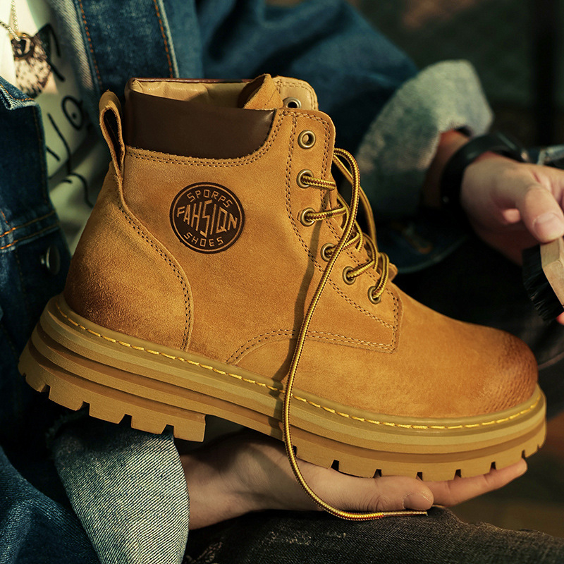 Martin Boots Couple Style Classic Popular Yellow Boots Women's Genuine Leather High-Top Thick-Soled Height-Increasing Casual Versatile Men's Boots