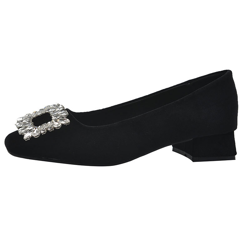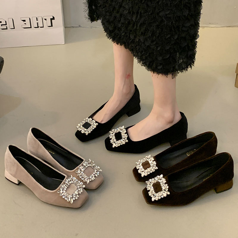 Square Toe Commuter High Heels, One-Leg Mary Jane Shoes, 2025 Spring New Thick Heel French Rhinestone Elegant Shoes