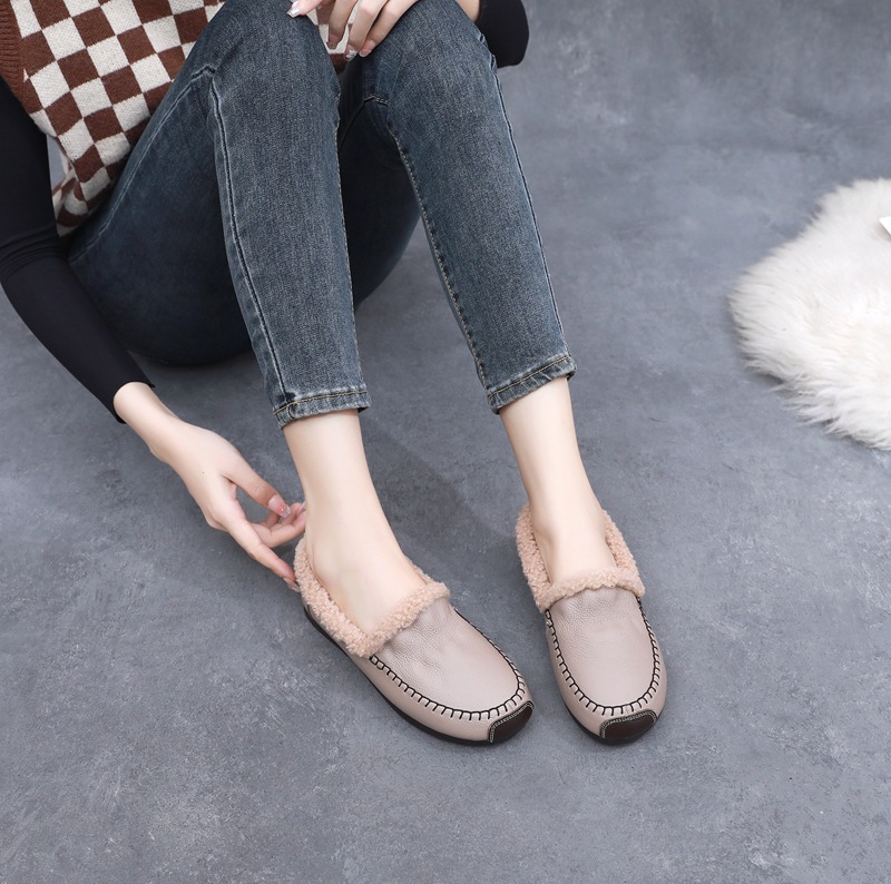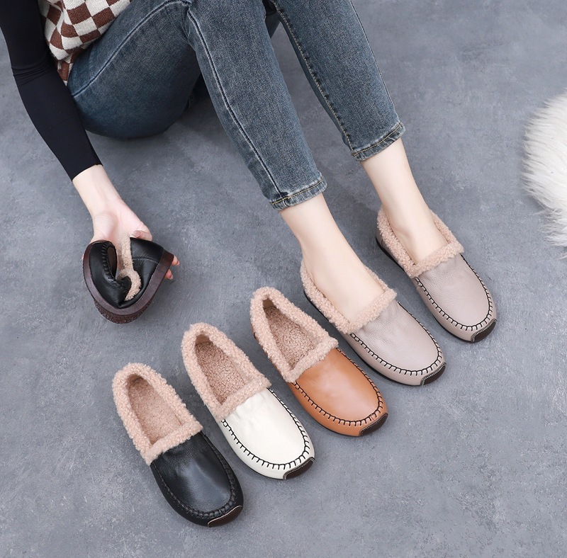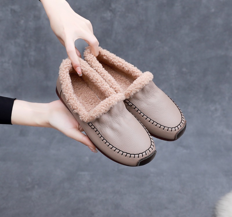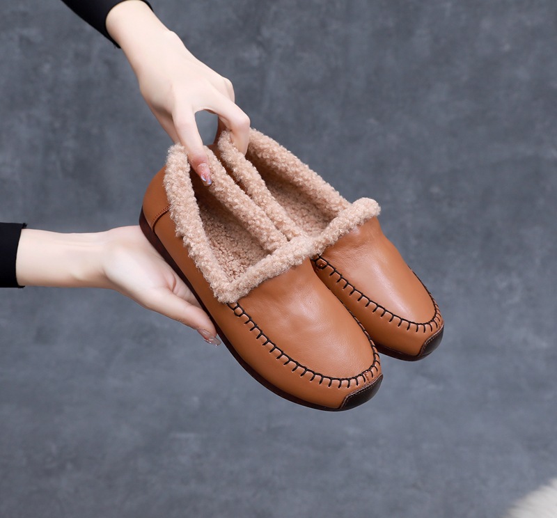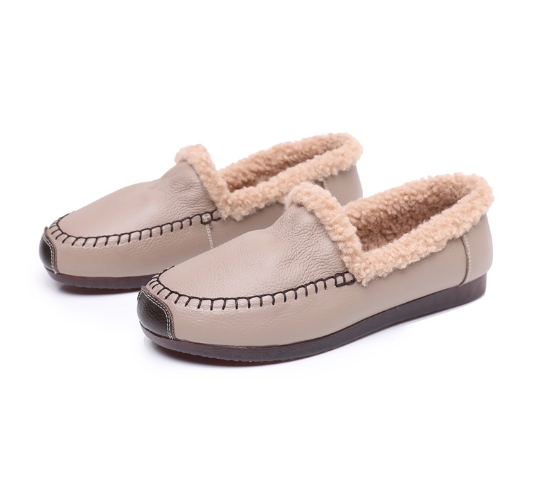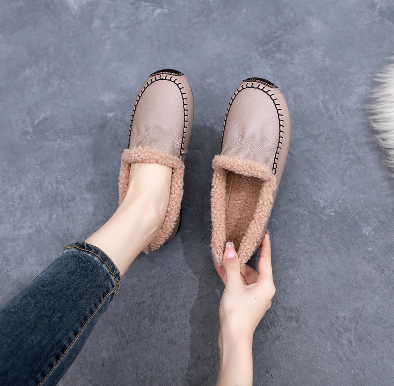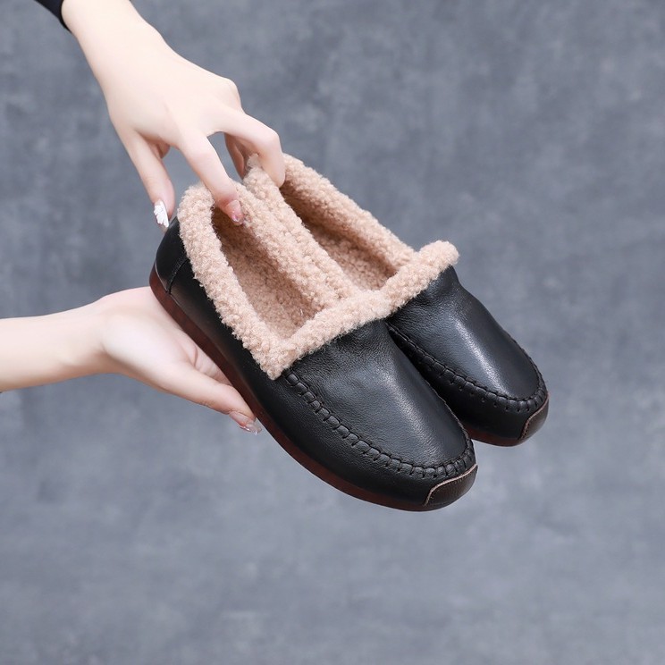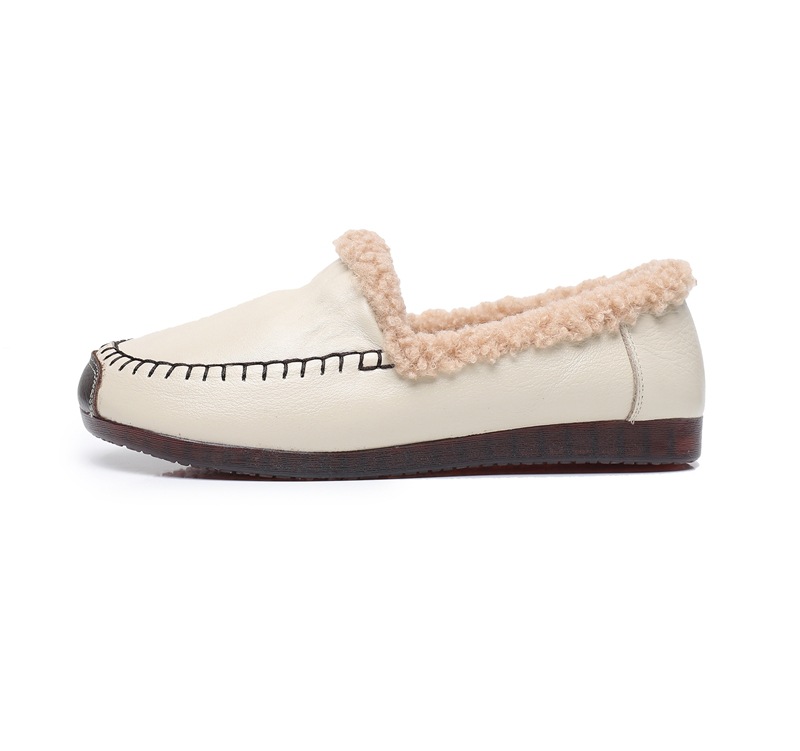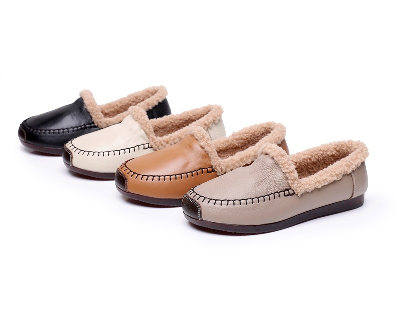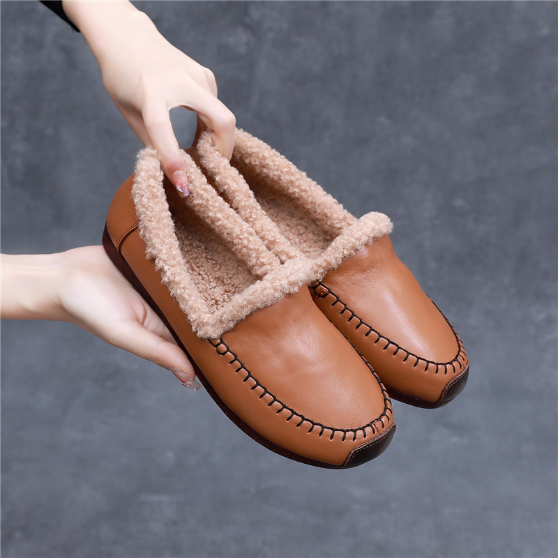 Winter warm cowhide comfortable soft bottom mom shoes fleece-lined women's shoes plus size wide running women's shoes 8128