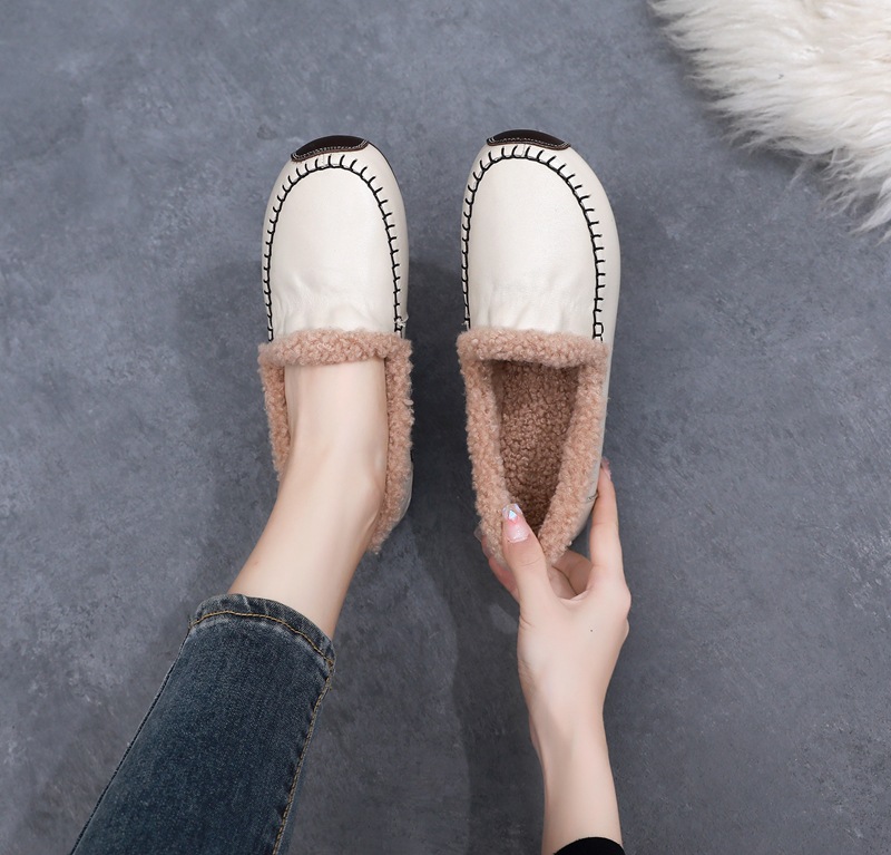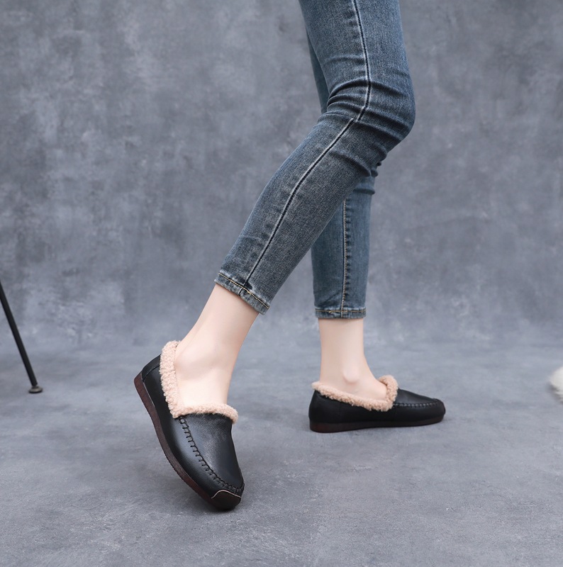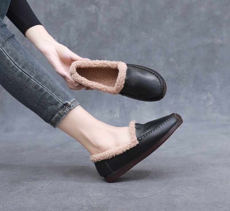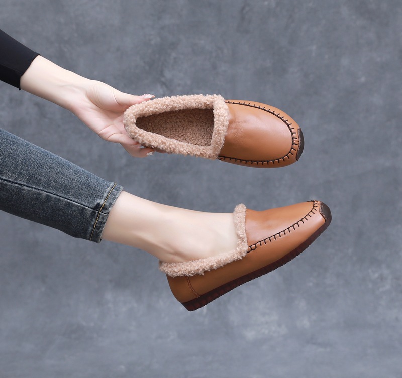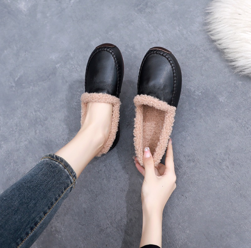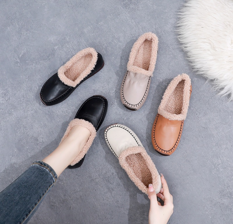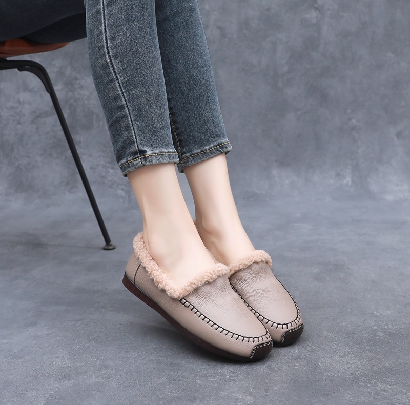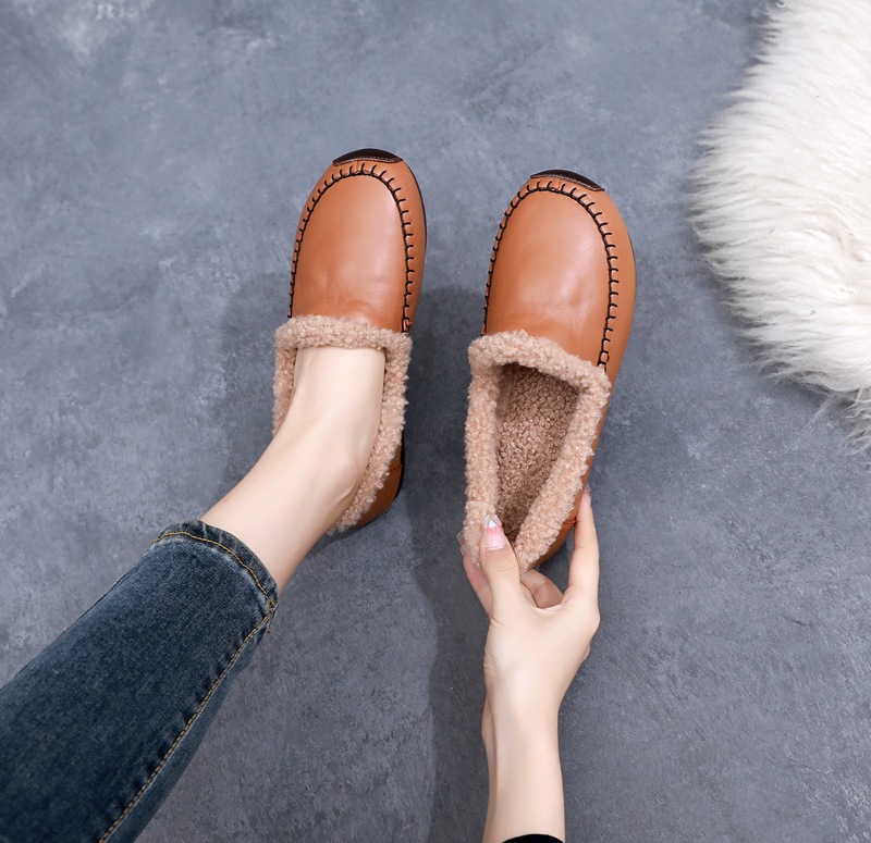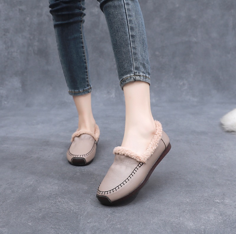 Winter warm cowhide comfortable soft bottom mom shoes fleece-lined women's shoes plus size wide running women's shoes 8128